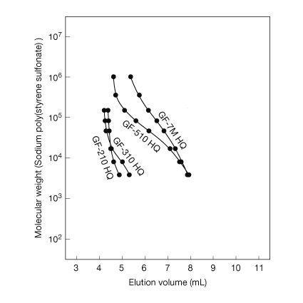Columns : Shodex Asahipak GF-HQ series (7.5 mm I.D. x 300 mm each)