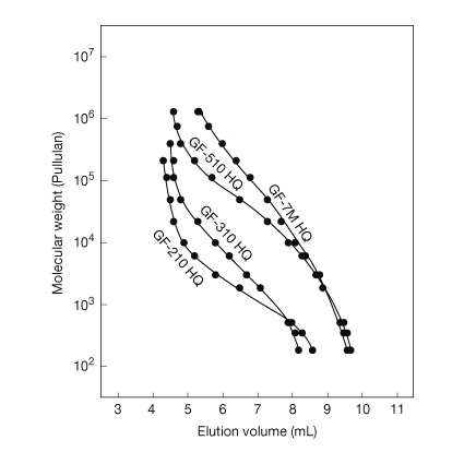 Columns : Shodex Asahipak GF-HQ series (7.5 mm I.D. x 300 mm each)