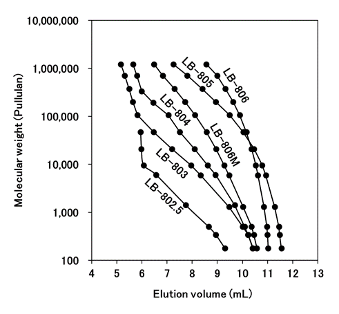 Columns : Shodex OHpak LB-800 series (8.0 mm I.D. x 300 mm each)