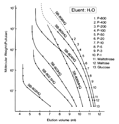 Columns : Shodex OHpak SB-800 HQ series (8.0 mm I.D. x 300 mm each)